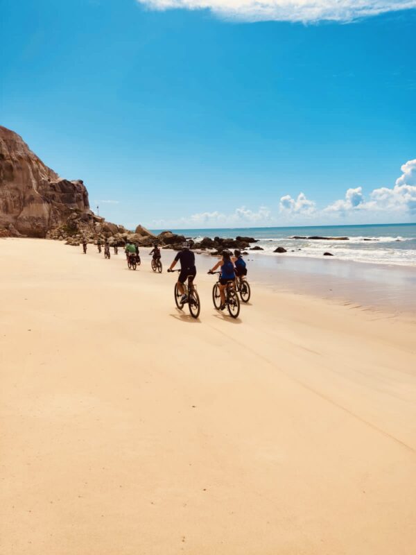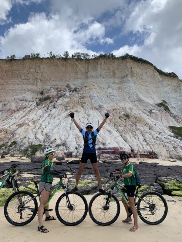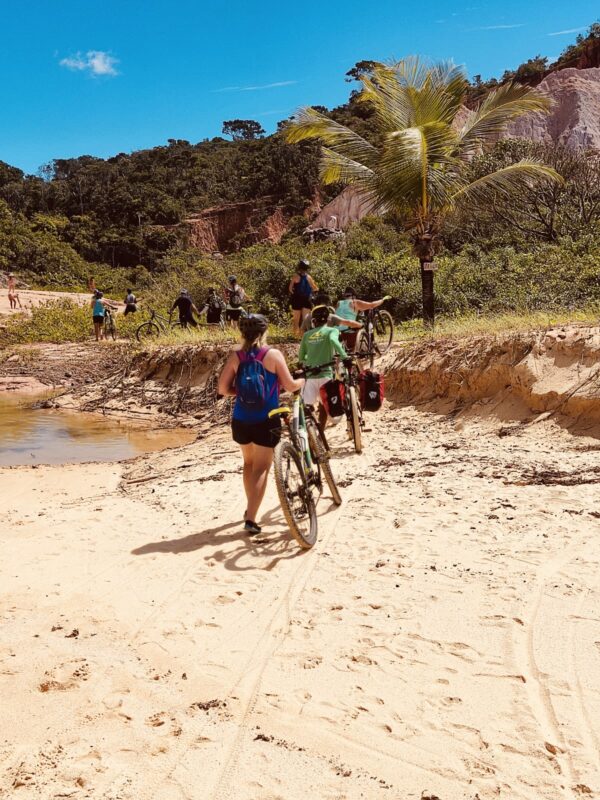 ⏱️ Após aproximadamente 02h30 de pedalada, chegamos à Praia dos Nativos, em Trancoso.